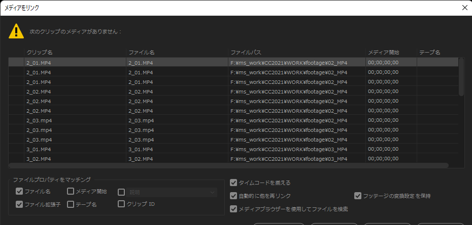 Premiere Proにファイルを読み込んだ後にファイル名を変更するとリンク切れを起こします。
