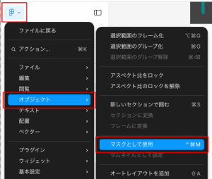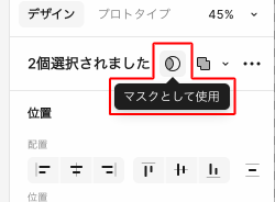 同じ並びの丸いアイコンをクリックするか、Figmaメニュー →[オブジェクト]→[マスクとして使用]をクリックしてください。